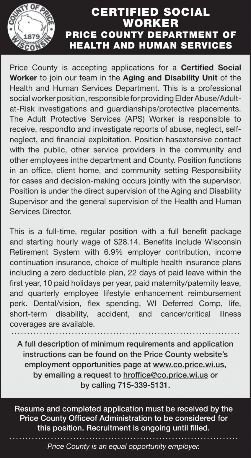 Jul 18, 2024. Price County Government Jobs from Wisconsin State Jobs