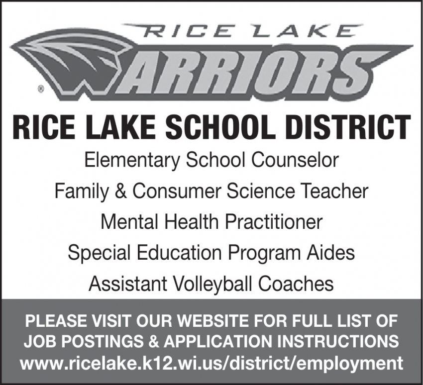 Jul 31, 2024. Rice Lake Area School District Education Jobs from Wisconsin State Jobs