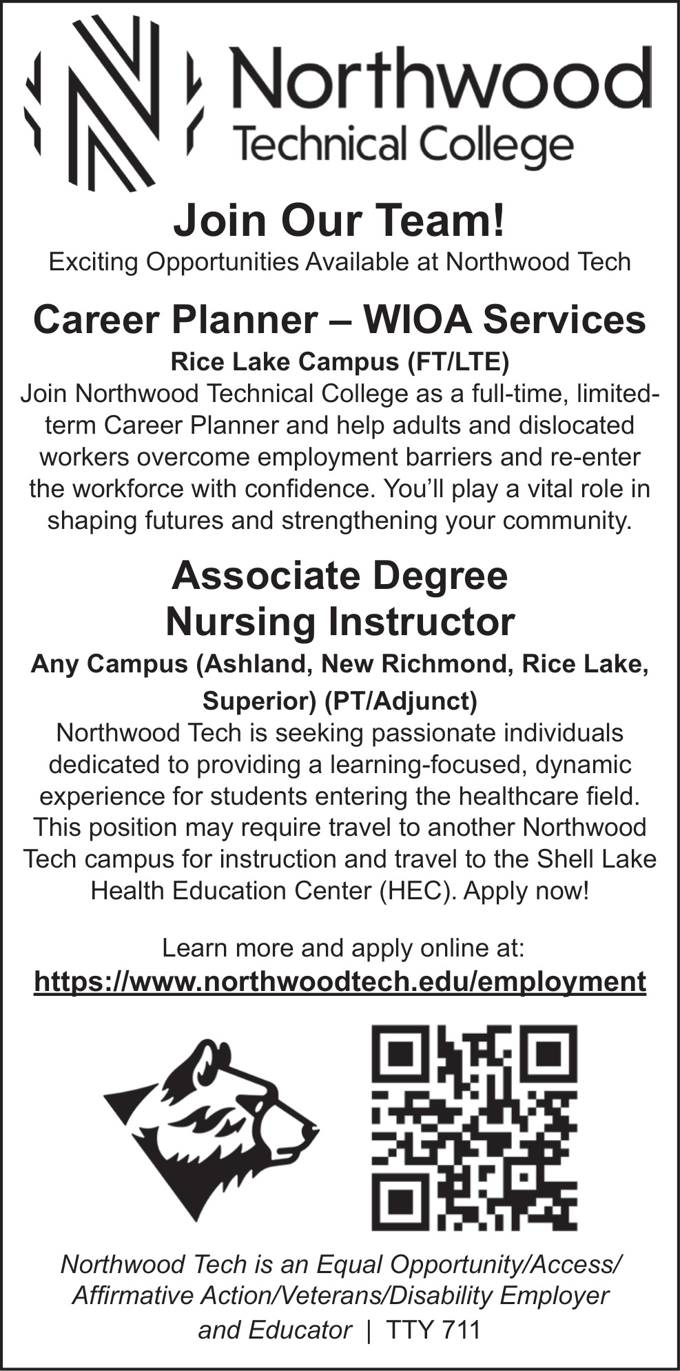 Oct 01, 2025. Northwood Technical College Education Jobs from Wisconsin State Jobs