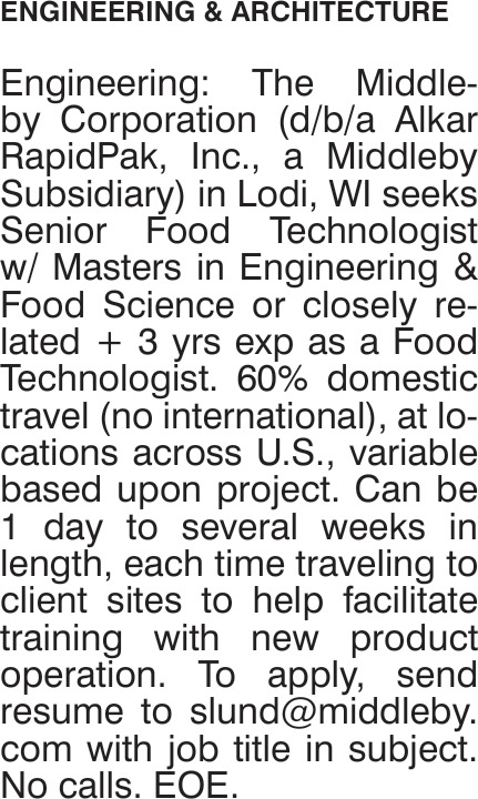 Oct 03, 2025. Middleby Corporation Engineering Jobs from Wisconsin State Jobs