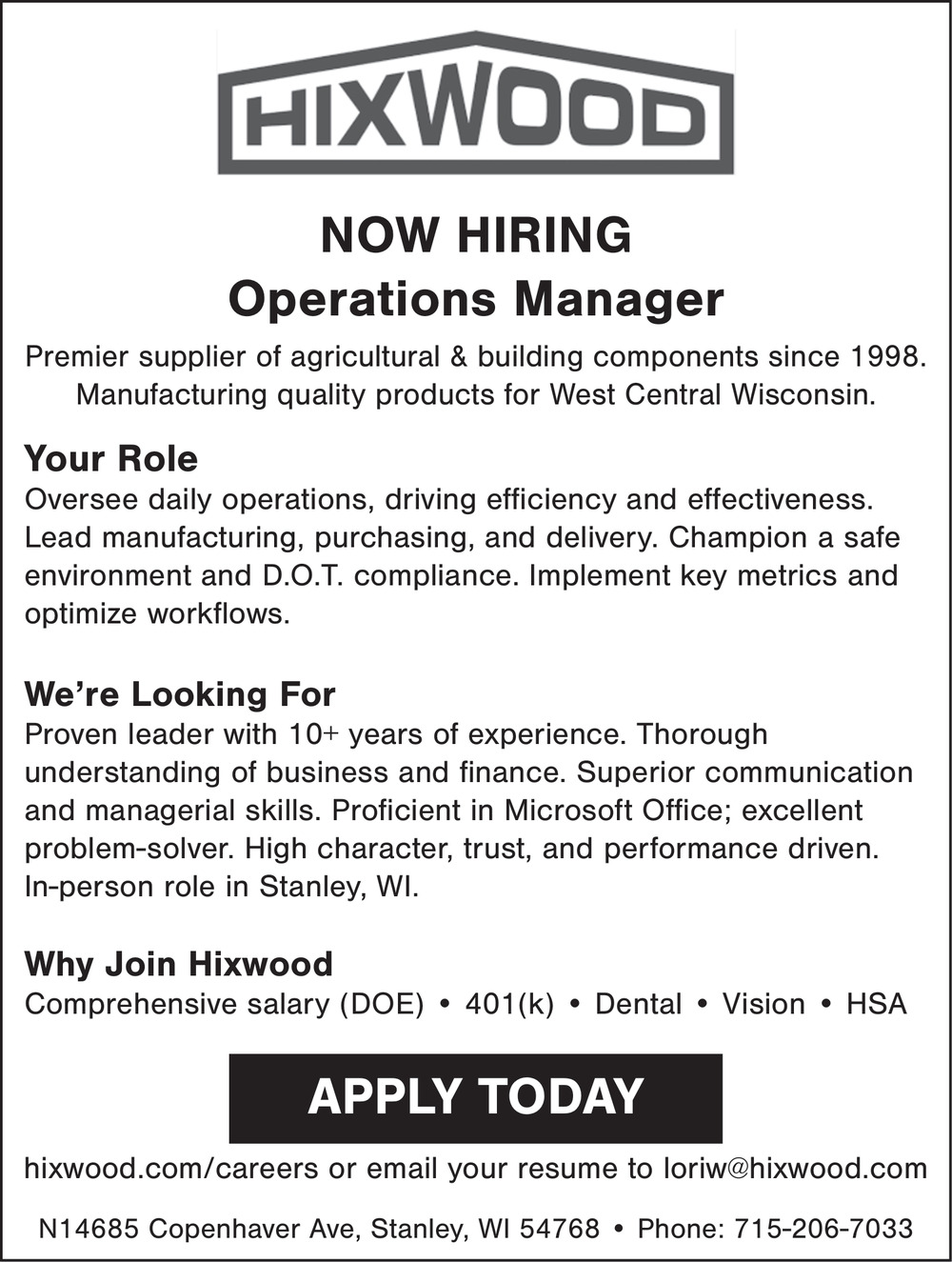 Oct 08, 2025. Hixwood - Stanley Manager / Supervisor Jobs from Wisconsin State Jobs
