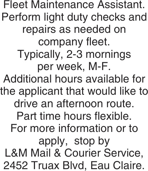 Jobs for L&M Mail & Courier Service in Eau Claire, WI