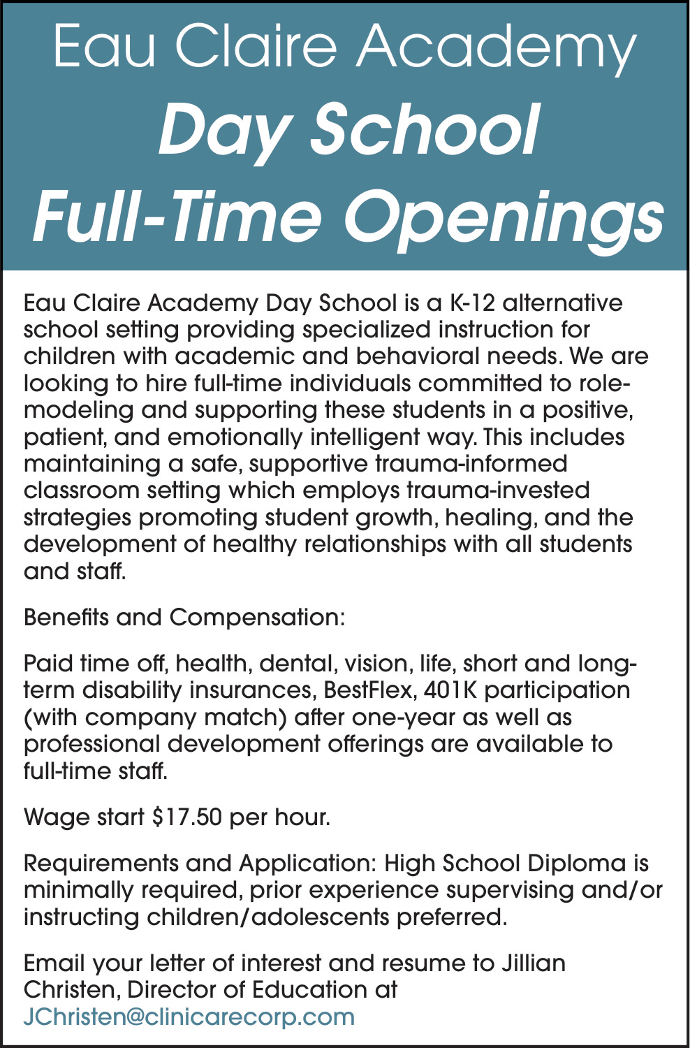 Nov 19, 2025. Eau Claire Academy - Jillian Christen Education Jobs from Wisconsin State Jobs