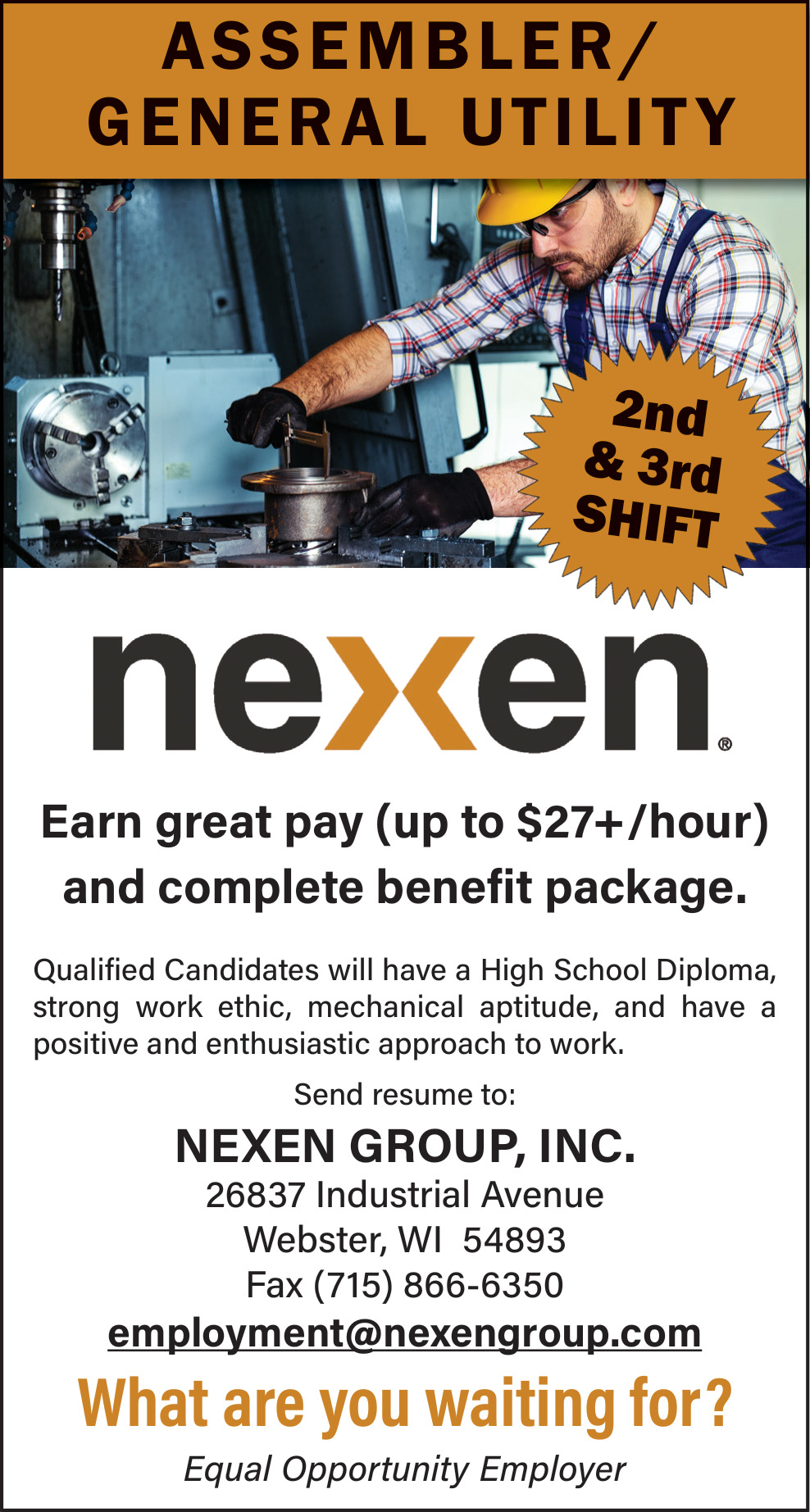 Jobs for Nexen Group, Inc. in Webster, WI