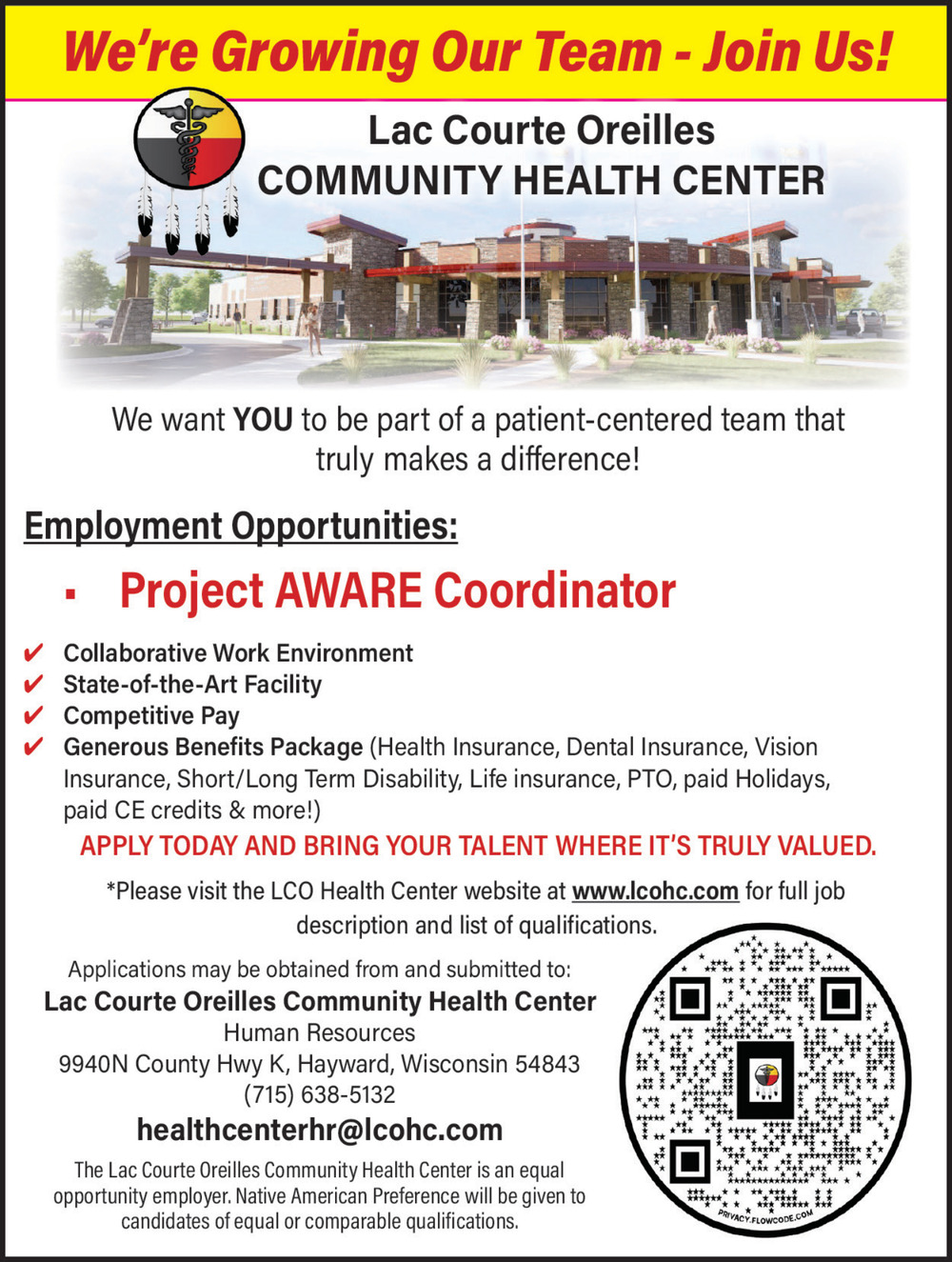 Jobs for Lac Courte Oreilles Community Health Center in Hayward, WI