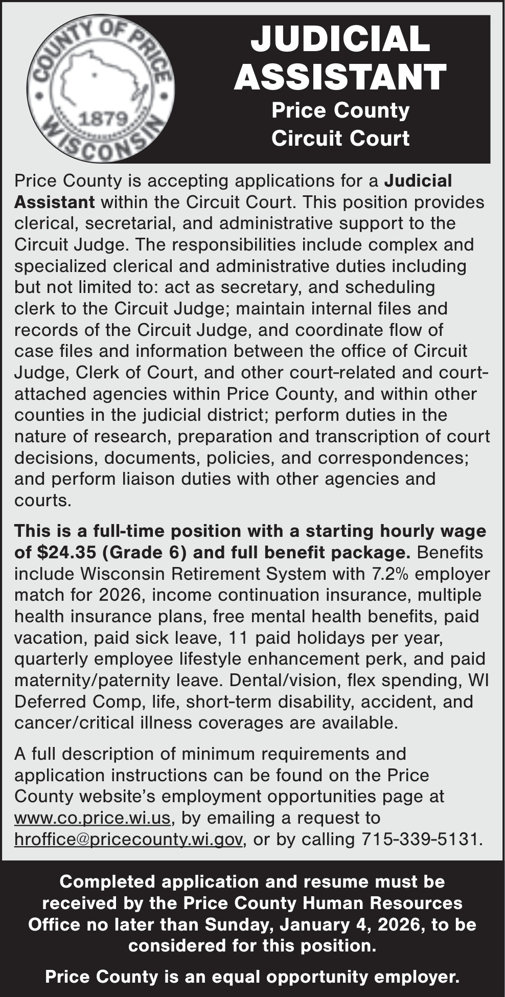 Dec 18, 2025. Price County Assistant Jobs from Wisconsin State Jobs