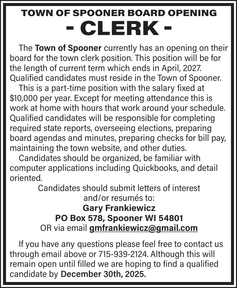 Dec 18, 2025. Town of Spooner Administration Jobs from Wisconsin State Jobs