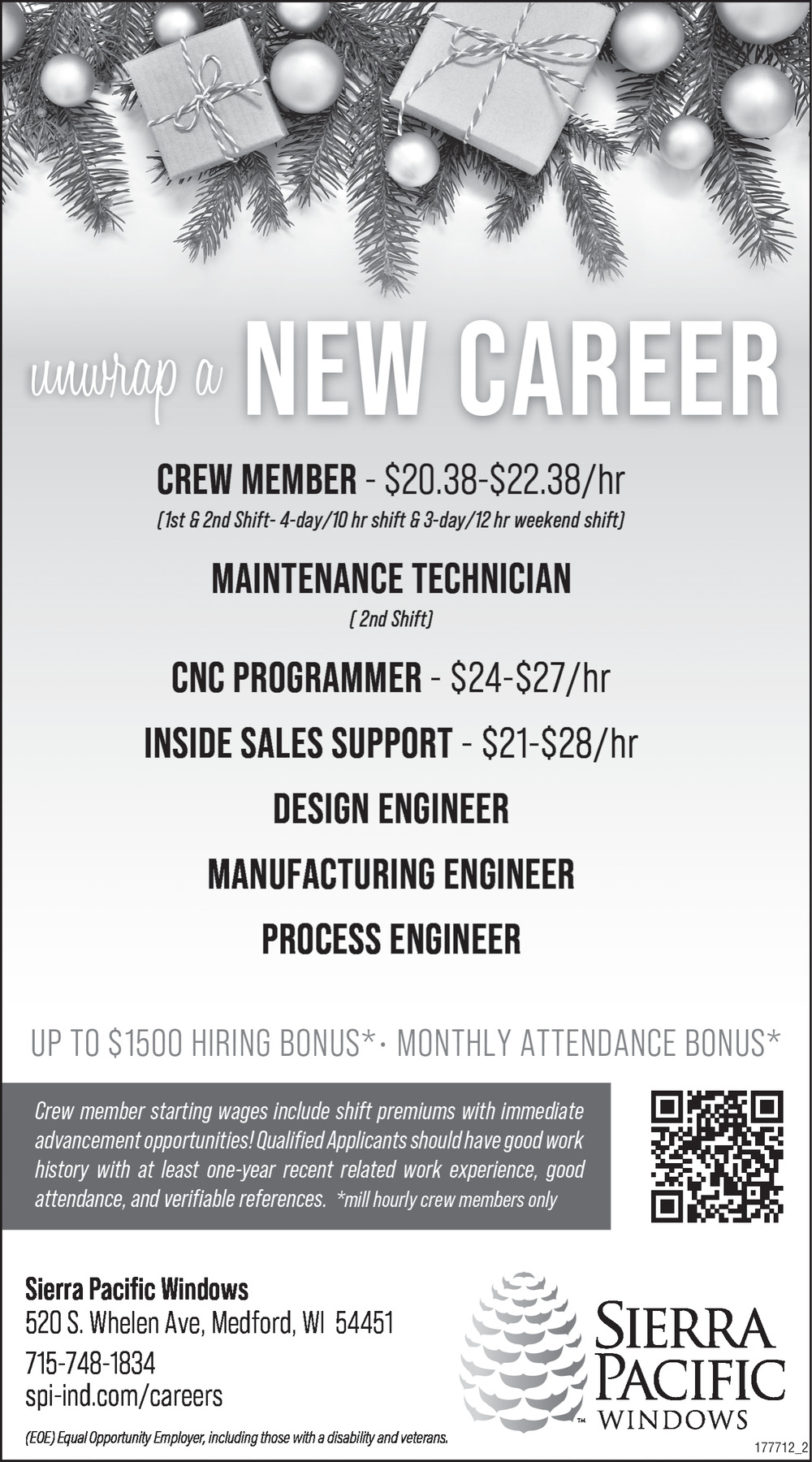 Dec 20, 2025. Sierra Pacific Windows Manufacturing Jobs from Wisconsin State Jobs