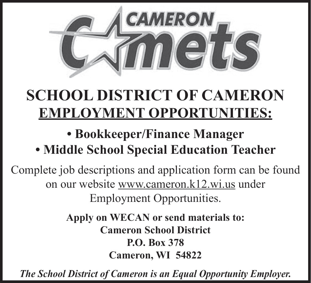 Dec 31, 2025. Cameron School District Education Jobs from Wisconsin State Jobs