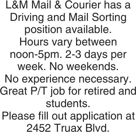 Jobs for L&M Mail & Courier in Eau Claire, WI