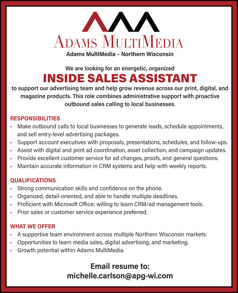 Feb 11, 2026. Adams MultiMedia - Michelle Carlson Sales & Marketing Jobs from Wisconsin State Jobs
