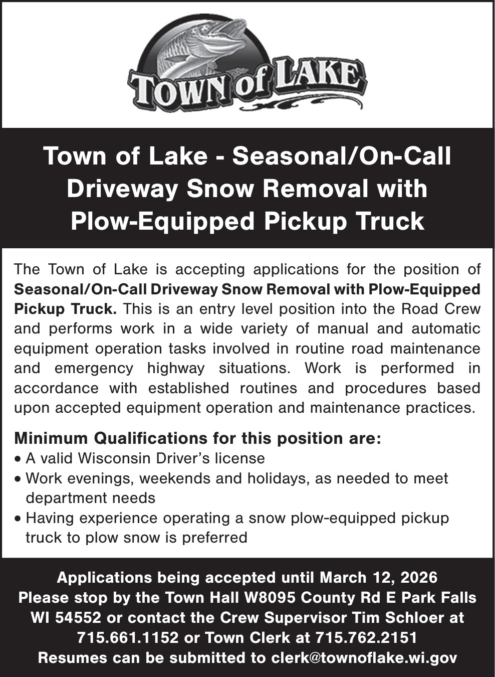 Feb 26, 2026. Town of Lake Government Jobs from Wisconsin State Jobs
