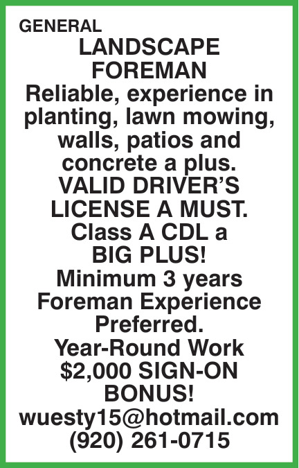 Mar 08, 2026. 920-261-0715 Landscaping Jobs from Wisconsin State Jobs