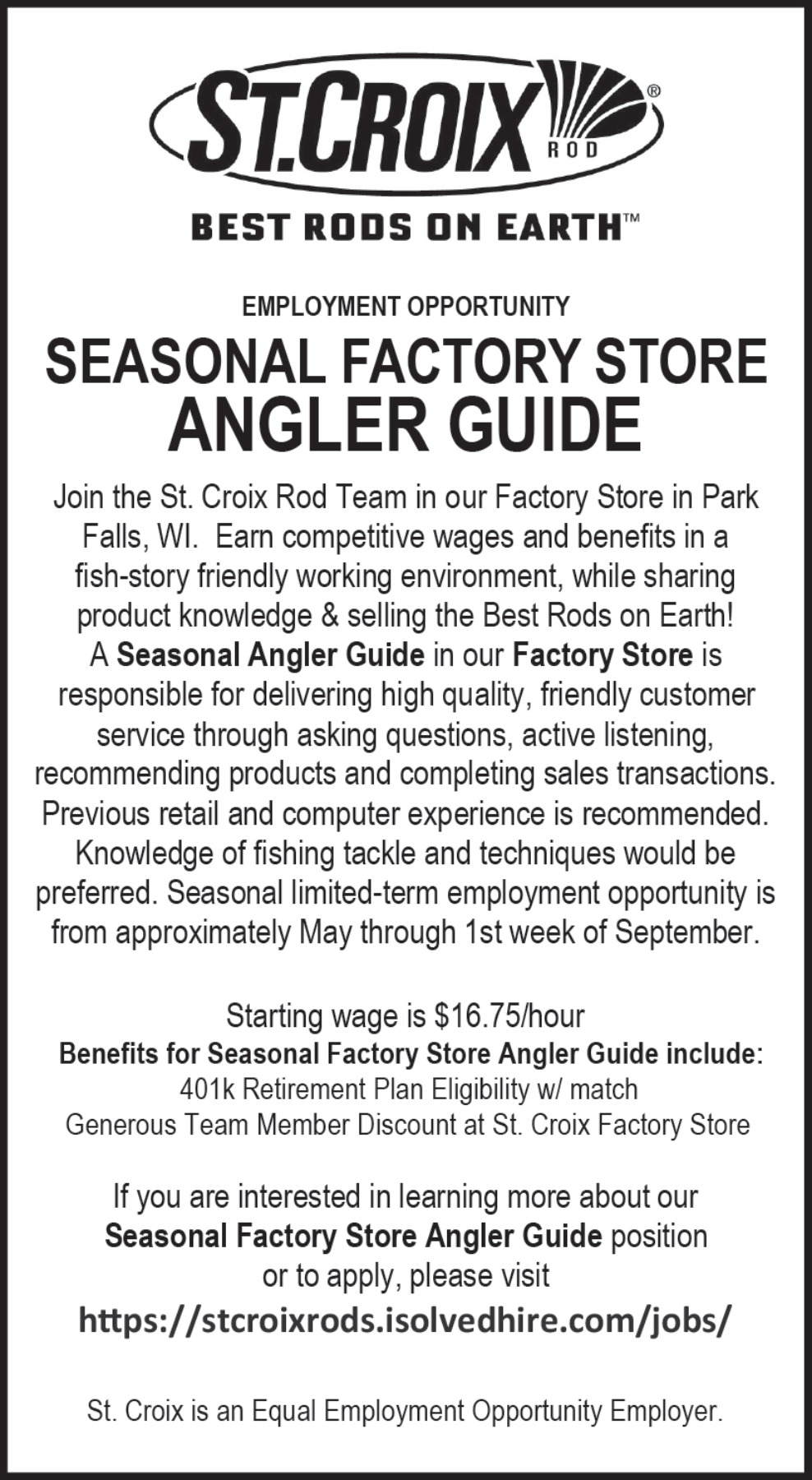 Apr 23, 2026. St. Croix Rod Customer Service Jobs from Wisconsin State Jobs